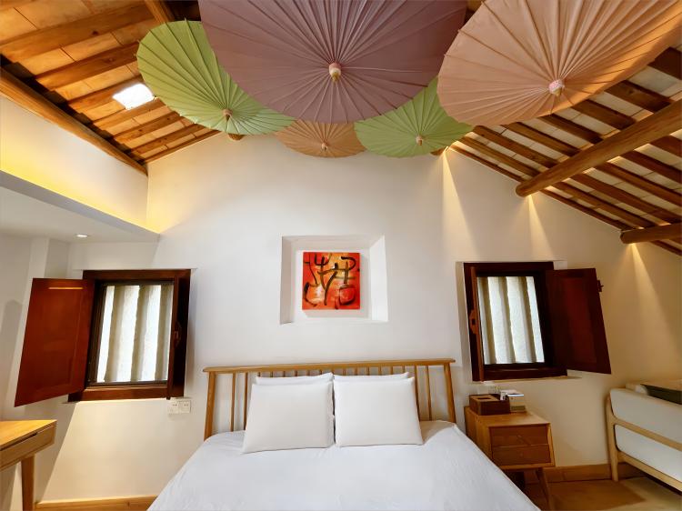 + 房间提供:空调、热水器、极米投影电视、宽带、淋浴房、独立卫生间、书桌写字台、双人沙发。